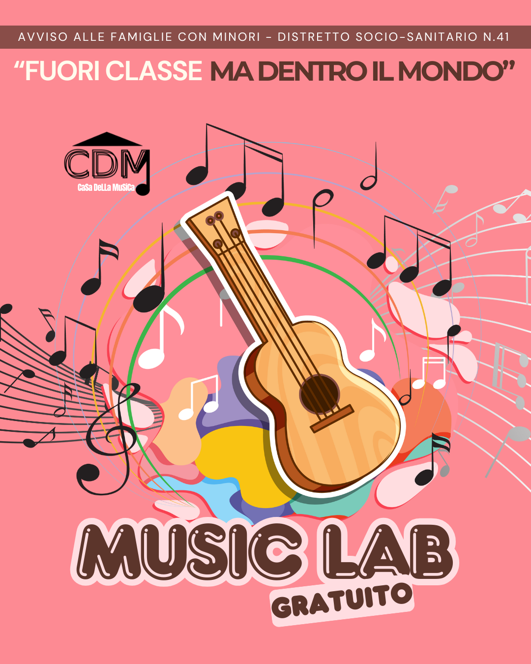 Casa della Musica APS ha aderito  al progetto “Fuori Classe ma Dentro il Mondo”, promosso dal Distretto Socio-Sanitario n. 41 – capofila Comune di Partinico – un’iniziativa che sostiene la partecipazione dei più giovani ad attività culturali e musicali attraverso l’erogazione di voucher dedicati alle famiglie.